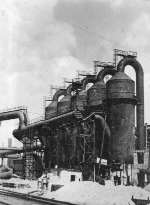 В сентябре 1946 года возобновила работу домна № 4[2][6] (объемом 1300 м³, на тот момент времени — одна из крупнейших в мире), основные колонны и горн которой были подорваны немцами, в ходе её восстановления под руководством инженеров А. С. Каминского, С. С. Крупенникова и П. А. Мамонтова был произведён первый в истории мировой металлургии опыт подъёма целой доменной печи весом 2600 тонн (это решение позволило существенно сократить сроки ремонта)[11].