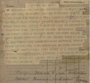 с описанием действий Басистого Н. Е. в Феодосийской десантной операции, подписанная