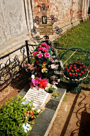 Здесь погребено тело возлюбившей Господа всею крепостию души своея и Ему Единому известной рабы Божией Веры, скончавшейся 1861 года мая 6 дня в 6 часов вечера, жившей в сей обители более 20 лет в затворе и строгом молчании, молитву, кротость, смирение, истинную любовь ко Господу и сострадание к ближним сохранившей до гроба и мирно предавшей дух свой Господу.