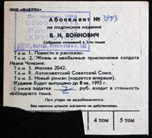 - ↑ Войнович В. Жизнь и необычайные приключения писателя Войновича: рассказанные им самим (недоступная ссылка) // Новые Известия. 2006. 26 мая.