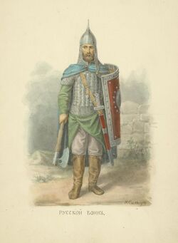 Русский бронник (пехотинец-кольчужник) XVI века, иллюстрация из книги Теодора Шимана «Столетие», 1886 года.