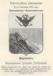 В 1781 году указом императрицы Екатерины II был утверждён герб Воронежа как административного центра Воронежской губернии: