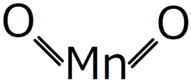 Оксид марганца(IV) (диоксид марганца) [math]\ce{ MnO2 }[/math] — порошок тёмно-коричневого цвета, нерастворимый в воде. Наиболее устойчивое соединение марганца, широко распространённое в земной коре (минерал пиролюзит).