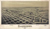 Карта Кларендона 1890 года | Мемориал ветеранам округа перед зданием окружного суда |