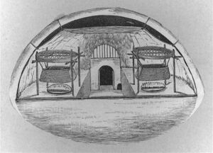 - Следующий тип полупостоянной иглу — семейное жильё среднего размера. Обычно это однокомнатное помещение для одной или двух семей. Из жилищ такого типа формировались небольшие селения.