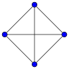 Графы: K4 полный граф часто изображается как квадрат с шестью рёбрами.