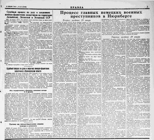 20 ноября 1945 года открылся Нюрнбергский процесс. Уже 21 ноября 1945 года было принято Постановление Политбюро ЦК ВКП(б) «О проведении судебных процессов над бывшими военнослужащими германской армии и немецких карательных отрядов» в 8 городах СССР: Ленинграде, Смоленске, Брянске, Великих Луках, Киеве, Николаеве, Минске и Риге[5].