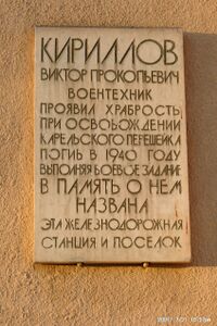 Переименована в 1948 г. вместе с посёлком в честь воентехника В. П. Кириллова, погибшего во время Зимней войны.