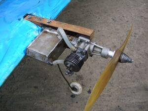Запуск двигателя производился резкими ударами (резким проворачиванием) пальцами руки за воздушный винт (желательно надевать добротную кожаную перчатку). При этом регулировались подача топлива и степень сжатия. После запуска двигатель регулировался на максимальные обороты[Примечание 2]. Перемещением контрпоршня добиваются устойчивой работы двигателя на максимальных оборотах.