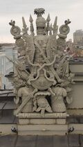 - ↑ Снижение высоты аттика преследовало две цели: уменьшить нагрузку на колонны путём его облегчения и изменение пропорций ворот для лучшей их гармоничности[2].