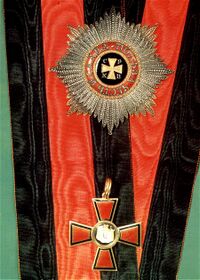 - ВТОРАЯ СТЕПЕНЬ. Крест и звезда, подобные установленным для первой степени. Крест носится на шее на ленте, шириною в один с четвертью вершок, а звезда на левой стороне груди.