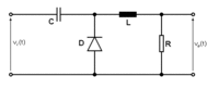 Если же поменять местами диод и конденсатор, получится детектор с закрытым входом или параллельный детектор, не пропускающий постоянную составляющую на нагрузку. По такой схеме строятся детекторные головки (ВЧ-пробники) для измерения переменного напряжения радиочастотного диапазона с помощью вольтметра постоянного тока.