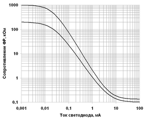 - ↑ Нелинейности амперлюксной характеристики светодиода, как правило, лежат за пределами области безопасной работы и (или) за пределами динамического диапазона фоторезисторов.
