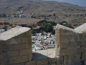 - Величественный Акрополь, античные руины которого гармонично переплетены со средневековыми стенами и зданиями крепости госпитальеров, доминирует над уютной деревенькой, слагаемой бело-коричневой архитектурой как вековых, так и более современных построек. Три колонны и фундамент храма Аполлона, построенный вокруг циклопических размеров прямоугольного камня. Отреставрированные остатки театра и единственный в мире сохранившийся до наших дней Олимпийский стадион — аналог стадиона древней Олимпии.