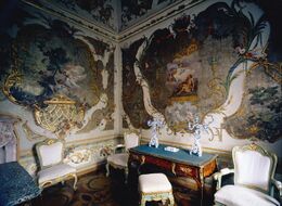 Неорококо — один из неостилей периода историзма и эклектики середины и второй половины XIX века, основанный на воспроизведении основных стилевых черт рококо XVIII века[27]. В наибольшей степени этот неостиль проявился в архитектуре и оформлении интерьеров зданий[28]. В стиле неорококо XIX века принято выделять «второе рококо», «третье рококо» конца XIX века и «четвёртое рококо» как внутристилевое течение периода модерна[29].