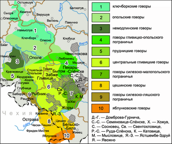 - гливицкие диалекты — центральные говоры, говоры силезско-малопольского пограничья, говоры гливицко-опольского пограничья;