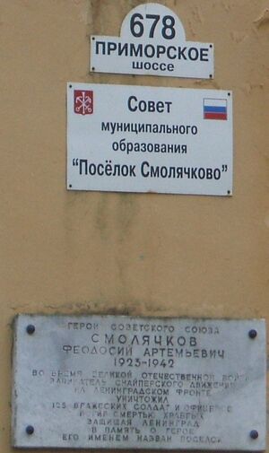 - ↑ Буклет администрации п. Смолячково. 2010 год