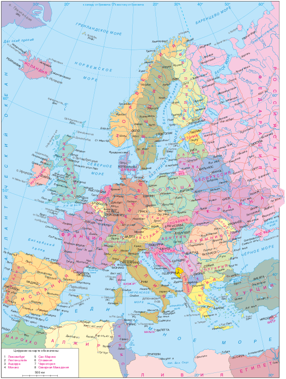 - ↑ Europe Map / Map of Europe - Facts, Geography, History of Europe - Worldatlas.com. www.worldatlas.com. Дата обращения: 13 апреля 2020. Архивировано 26 мая 2020 года.