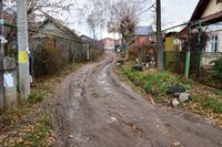 Территорию посёлка прорезает овраг, склоны которого постепенно застраиваются (октябрь 2018)