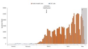 Коммерческие лаборатории США начали испытания в начале марта 2020 года. С 5 марта 2020 года LabCorp объявил о доступности тестирования COVID-19 на основе ОТ-ПЦР по всей стране.[9] Quest Diagnostics также сделал общенациональное тестирование COVID-19 доступным с 9 марта 2020 года.[10] Сбор и обработка образцов должны выполняться в соответствии с требованиями CDC.
