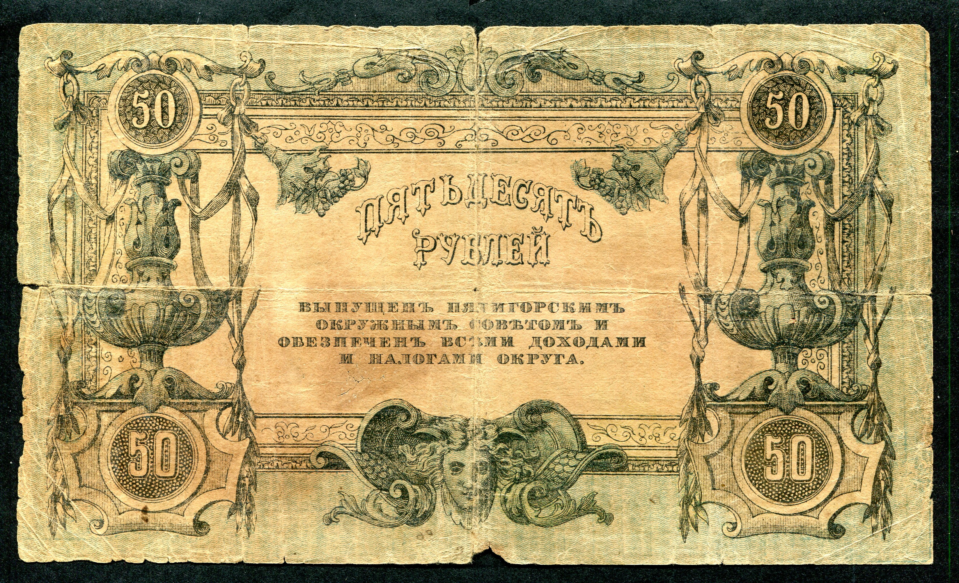 | Описание | Бона. 50 рублей 1918 г. Пятигорск - 2 |