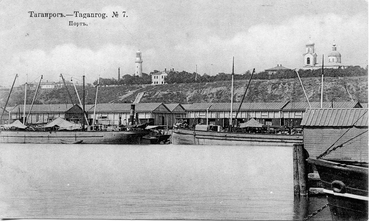 Источник файла — сайт Wikimedia Commons, куда он был загружен под одной из свободных лицензий ( https://commons.wikimedia.org/wiki/File:1900_Taganrog_Port.jpg ). Авторов, работавших над этим файлом см. в истории файла: https://commons.wikimedia.org/w/index.php?title=File:1900_Taganrog_Port.jpg&action=history