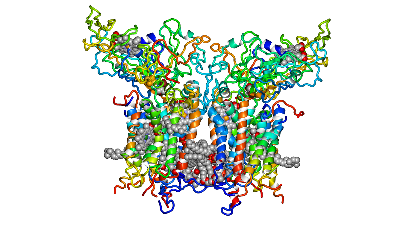 | Описание | Cytochrome b6f complex with cofactors and surrounding lipids. Front view. |