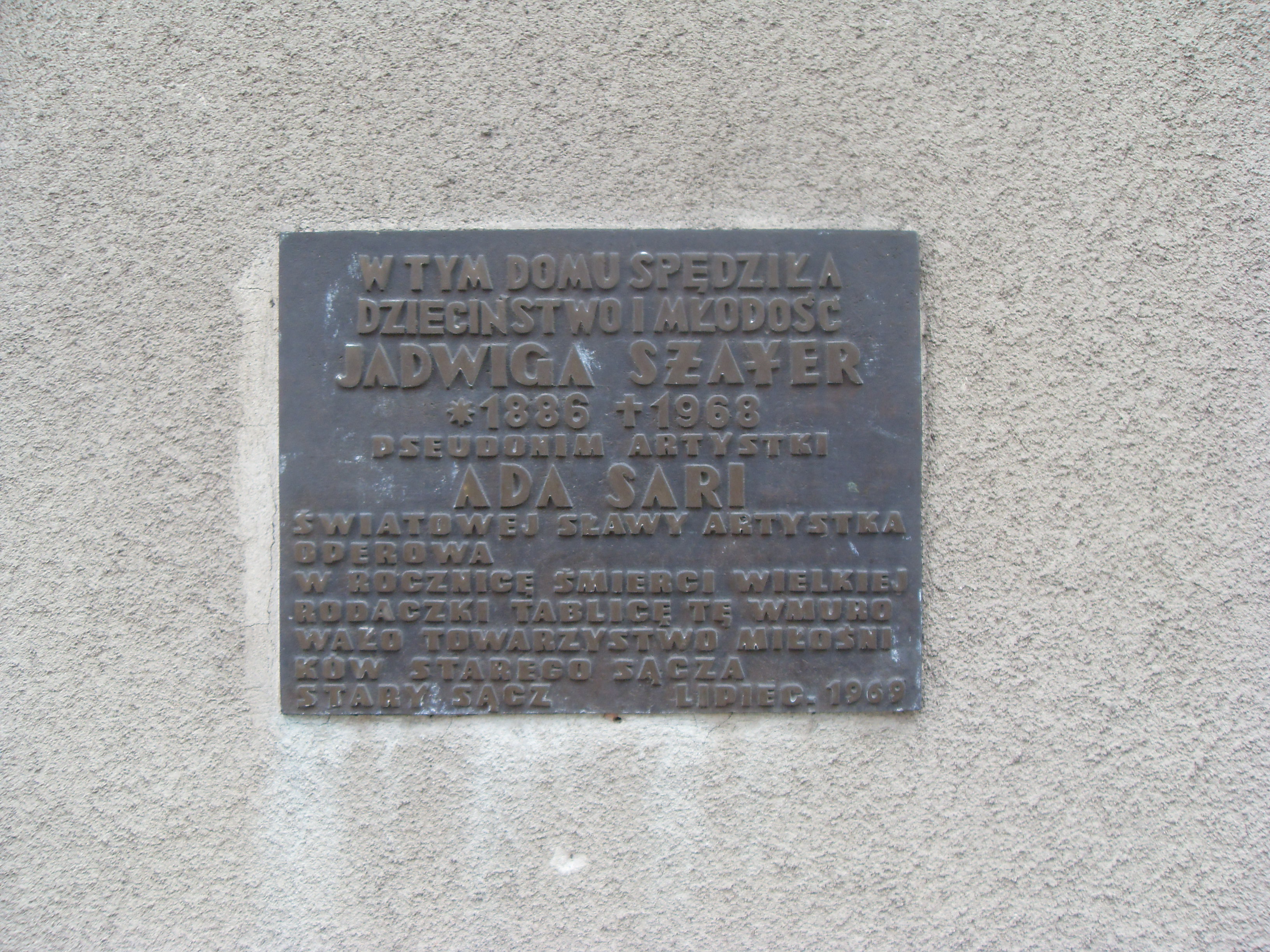 | Описание | Tablica pamiątkowa, dom Ady Sari w Starym Sączu |