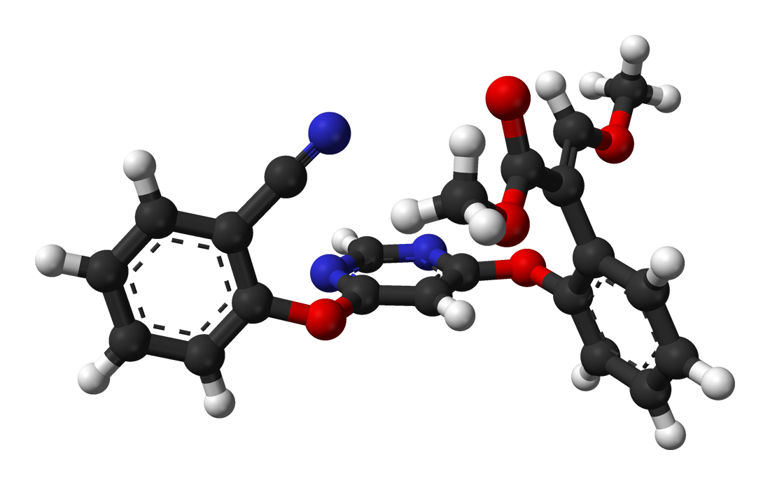Источник файла — сайт Wikimedia Commons, куда он был загружен под одной из свободных лицензий ( https://commons.wikimedia.org/wiki/File:Azoxystrobin-from-xtal-3D-balls.png ). Авторов, работавших над этим файлом см. в истории файла: https://commons.wikimedia.org/w/index.php?title=File:Azoxystrobin-from-xtal-3D-balls.png&action=history