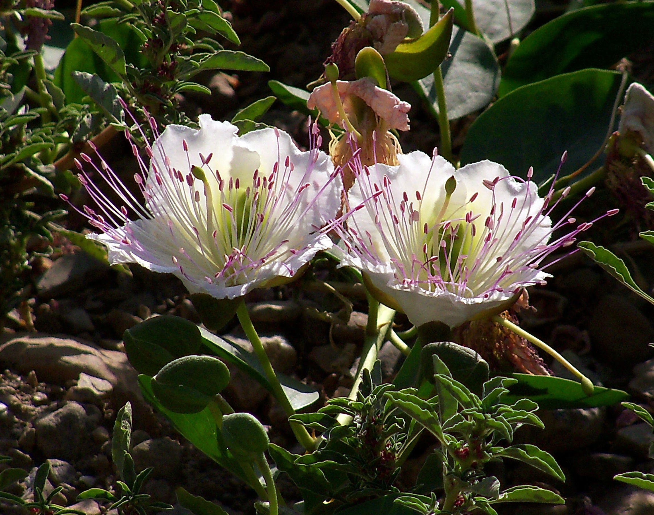 | Описание | Capparis spinosa - Alcaparra, Tápena - Jardín de Agrucaper SA/Delicias , Águilas (Murcia, España). |