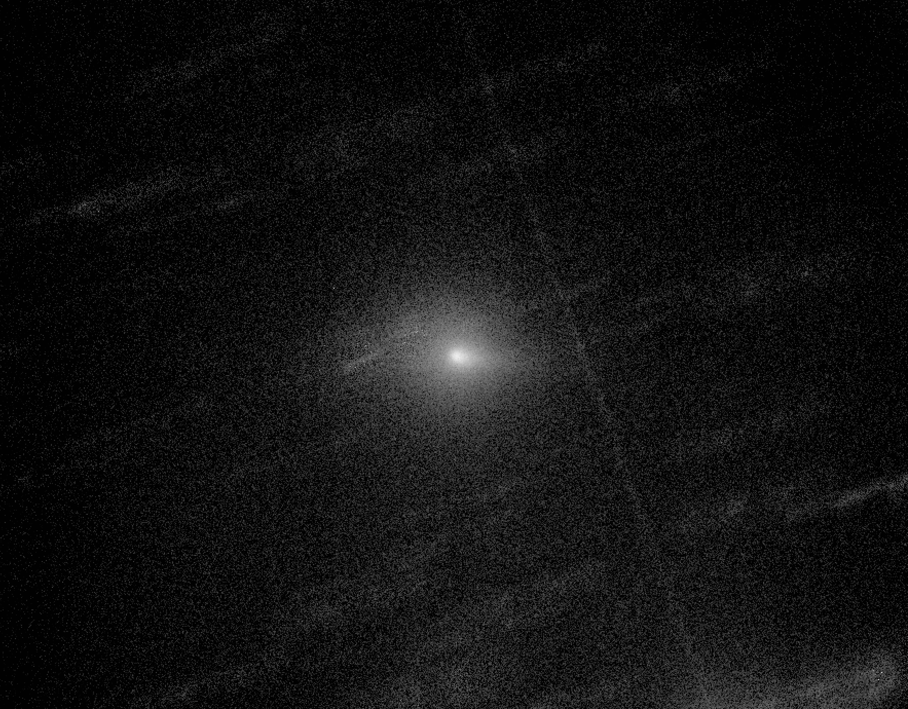 | Описание | This is a stack of 3x600 second greyscale exposures of the recently-discovered comet A11bP7I (likely to be designated C/2024 S1 after the time of writing) taken by a 0.43-m telescope at observatory code X09 on the morning of September 28. The stack is a "darken only" stack, hence the ghost appearances of streaked stars in the background. The line left of the comet is an artifact of one of these stars as well.