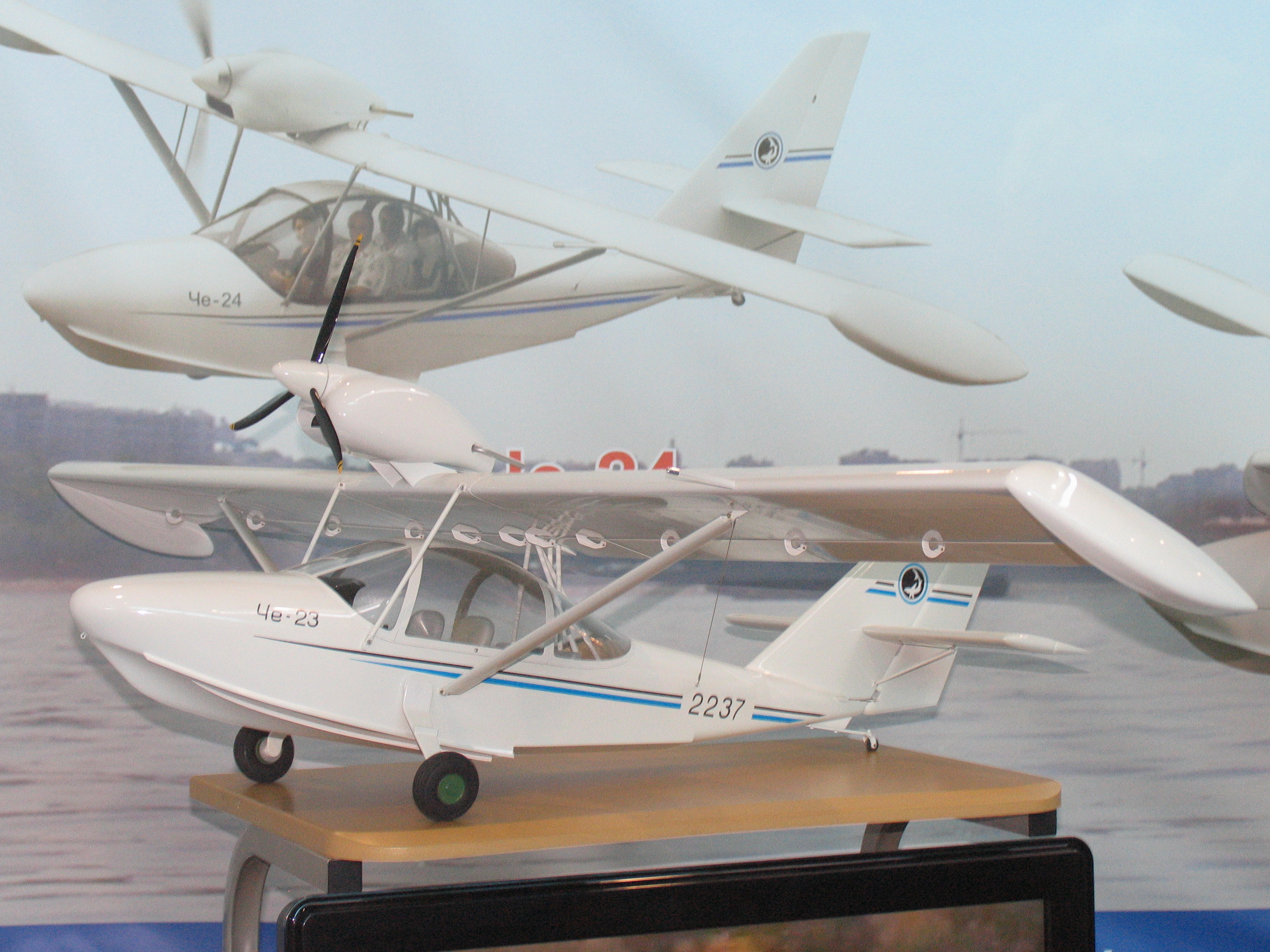 | Описание | Модель гидросамолёта Че-23 на выставке «ИнтерАэроКом 2010», Санкт-Петербург. |