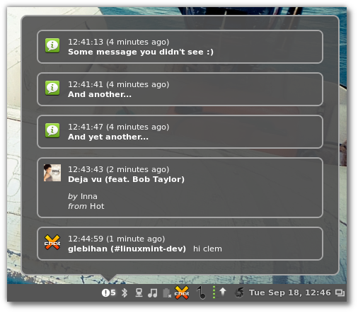 | Описание | A Linux Mint's Cinnamon 1.6 showing a Notifications Applet. |