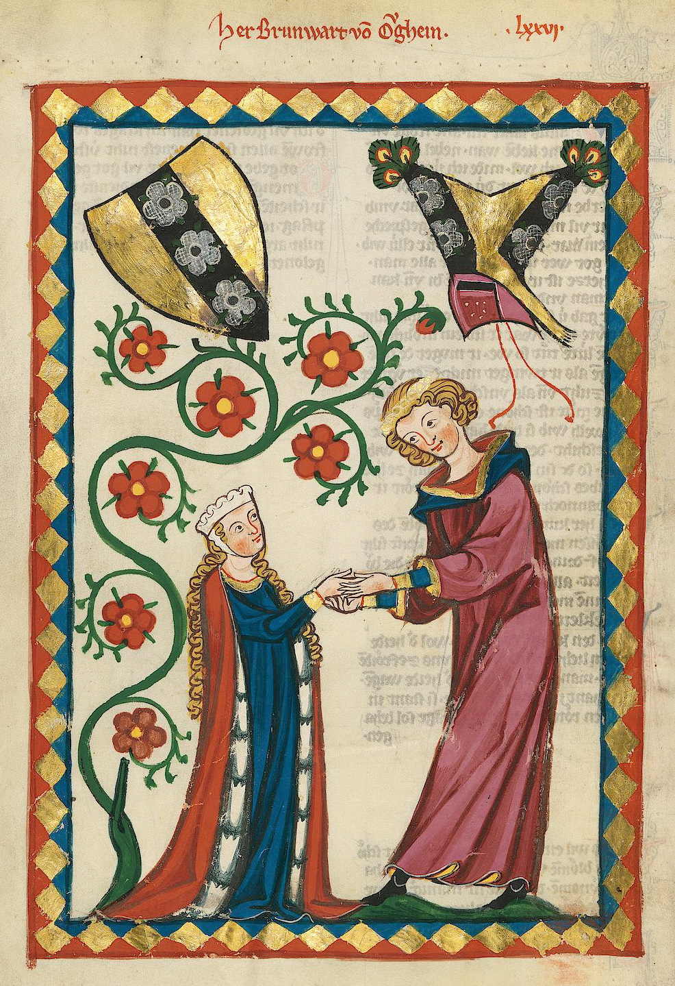 Источник файла — сайт Wikimedia Commons, куда он был загружен под одной из свободных лицензий ( https://commons.wikimedia.org/wiki/File:Codex_Manesse_Brunwart_von_Augheim.jpg ). Авторов, работавших над этим файлом см. в истории файла: https://commons.wikimedia.org/w/index.php?title=File:Codex_Manesse_Brunwart_von_Augheim.jpg&action=history