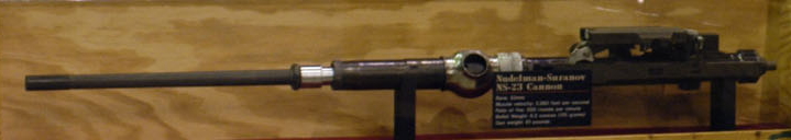 | Описание | A Nudelman-Rikhter NR-30 cannon Suranov (incorrectly labeled as NS-23) on display at the National Museum of the US Air Force |