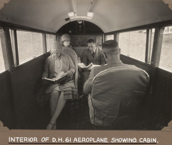 | Описание | The interior of the De Havilland DH.61 showing 4 passengers in the 8 passengers capacity cabin QANTAS VH-UJB 1929. |