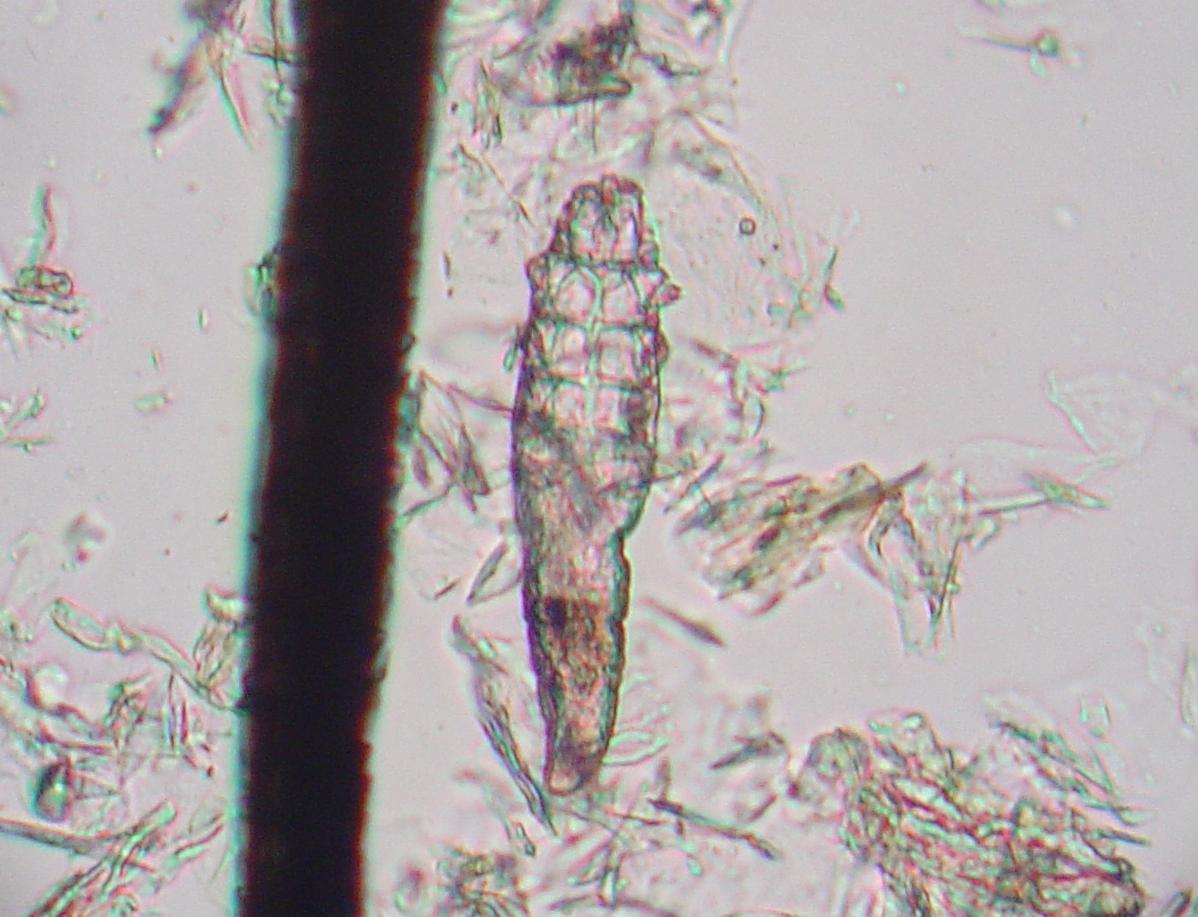 | Описание | Photo of Demodex canis taken through a microscope at 400x magnification. Obtained from a skin scraping of a dog with demodecosis. |