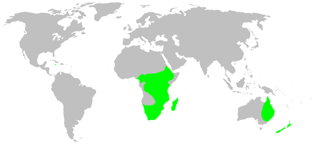 | Описание | Cyatholipidae habitat distribution, drawn after Platnick: World Spider Catalog 7.0. This is not a precise rendering of the distribution! If you have better information, please replace this map, or send me the info, and i will redraw it. |