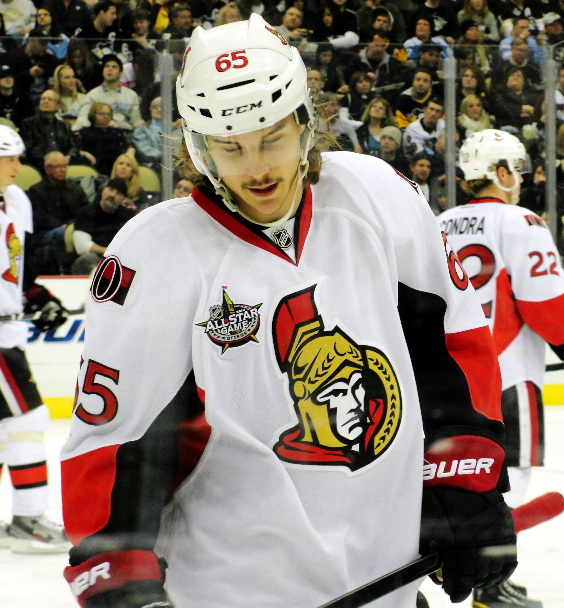 | Описание | Erik Karlsson of the Ottawa Senators warms up before a November 25, 2011 game against the Pittsburgh Penguins at Consol Energy Center in Pittsburgh, PA. |