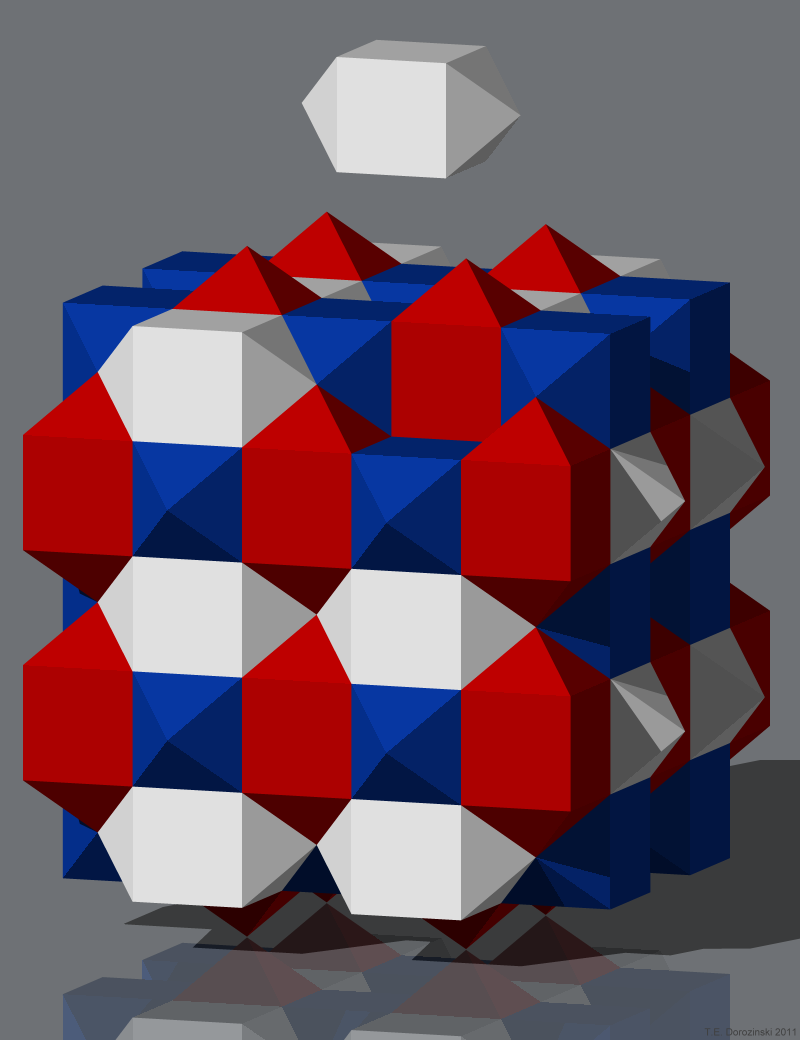 | Описание | 3D tessellation with polyhedron, that is made of cube and two square pyramids (each 1/6 of cube). Similar Johnson's polyhedron J15. |