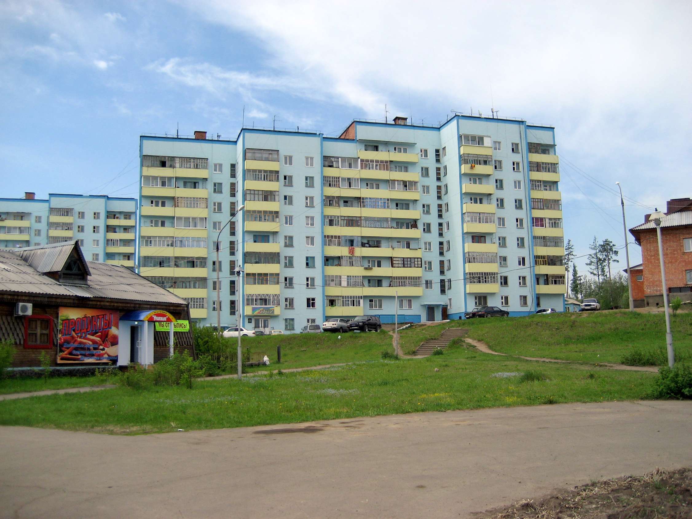| Описание | Город Кодинск, улица Гайнулина, дом 4. Один из трех девятиэтажных панельных двухподъездных домов жилого комплекса "3 тополя". Справа здание Администрации. Слева кафе "Берендей" |