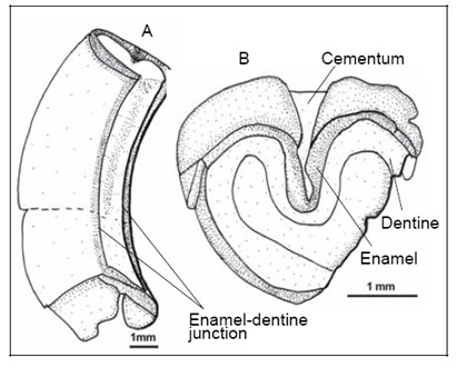 | Описание | Подробная схема строения коренного зуба Lavanify miolaka (вид с двух сторон) |