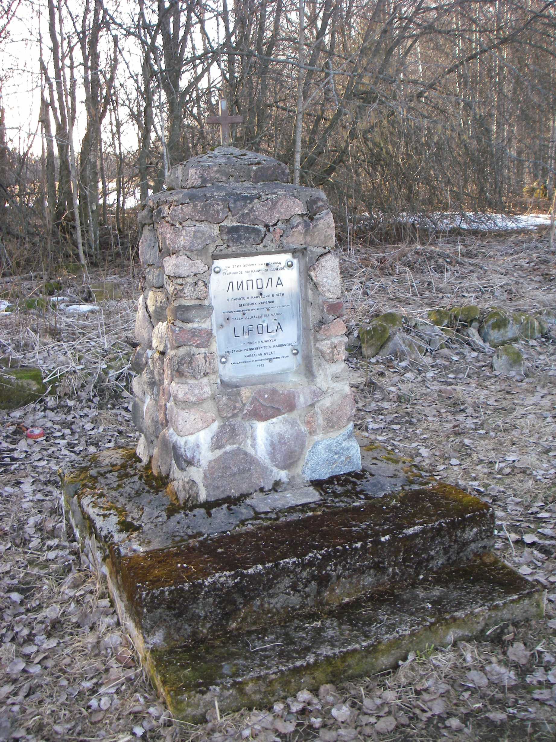 | Описание | Monument at the place of former finnish village Lipola |