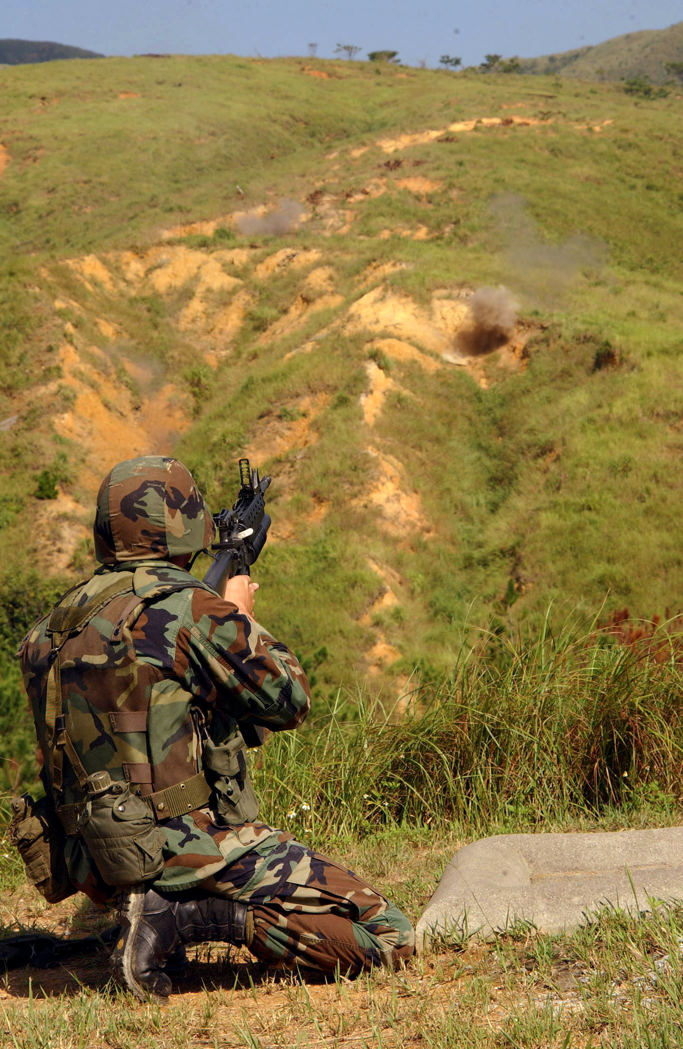 | Описание | 031013-N-9712C-002 Camp Hansen, Okinawa, Japan (Oct. 13, 2003) -- Utilitiesman 3rd Class Osborne fires off a 40 mm round out of a M203 grenade launcher attached to an M16 assault rifle during range qualifications. Osborne is assigned to Naval Mobile Construction Battalion Forty (NMCB-40), which is deployed to Okinawa and is working on construction projects throughout Japan. U.S. Navy photo by Photographer's Mate Airman John P. Curtis. (RELEASED) |