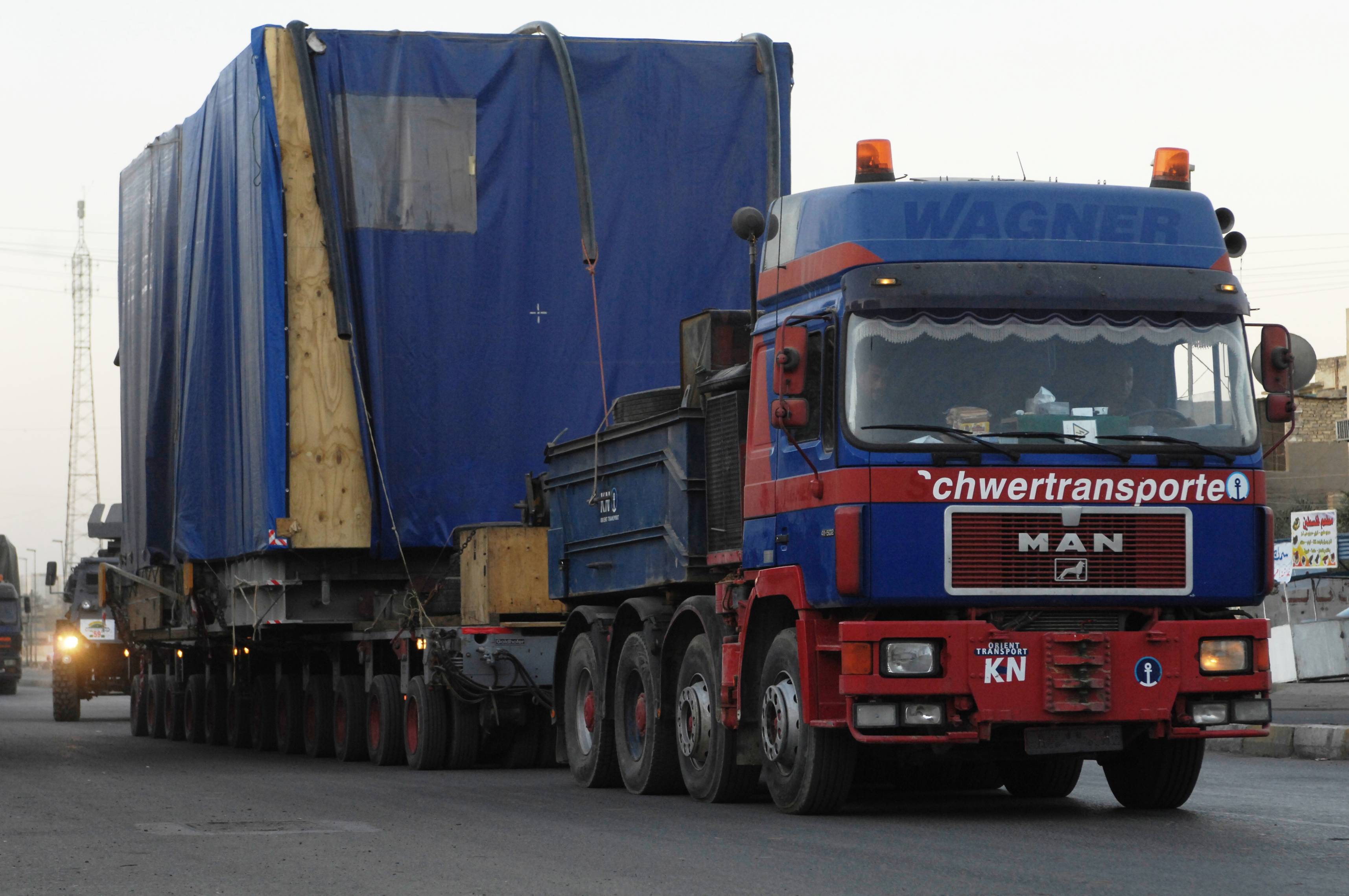 | Описание | A civilian MAN 41.502 truck moves a generator from the international zone. |