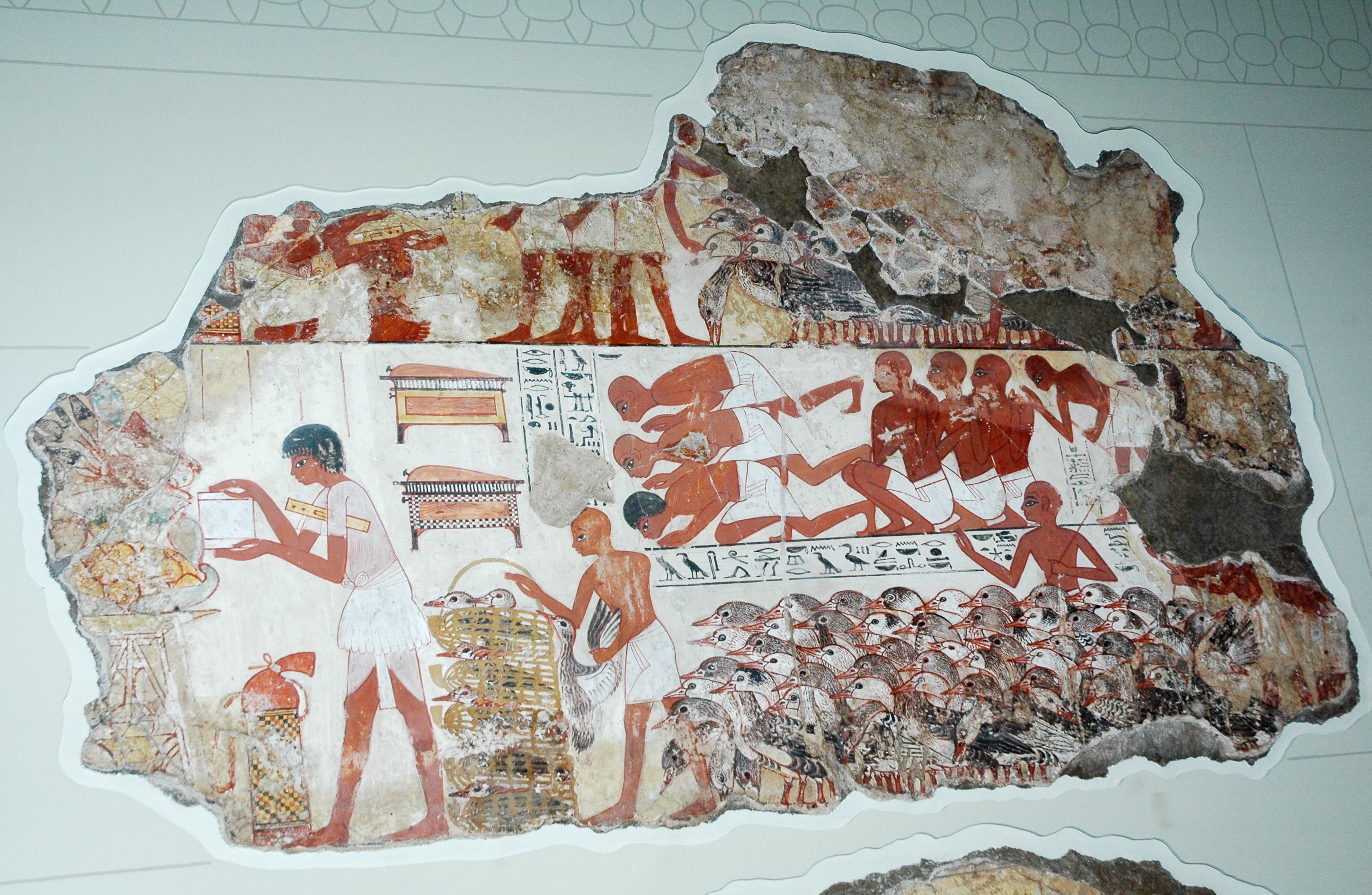 | Описание | Scene from the lost tomb-chapel of Nebamun, exposed in the British Museum, scene showing the presentation of flocks and geese, Inv.: BM EA 37978 |