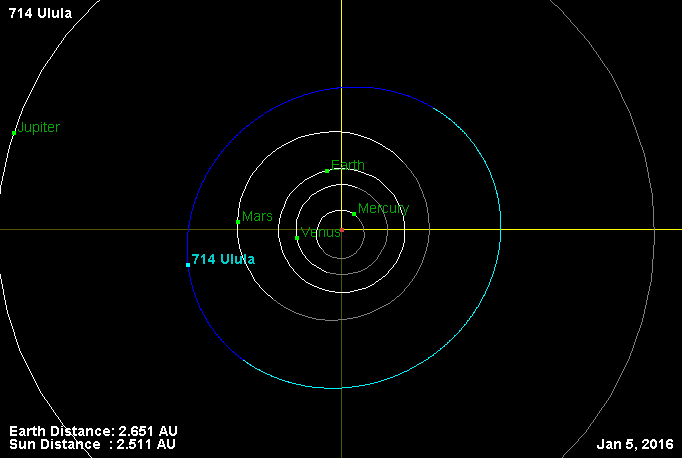 | Описание | Orbit of asteroid 714 Ulula and his location in Solar system |