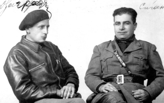 | Описание | Dimitris Sakarelos (left), Greek communist and officer of International Brigades during the Spanish Civil War |