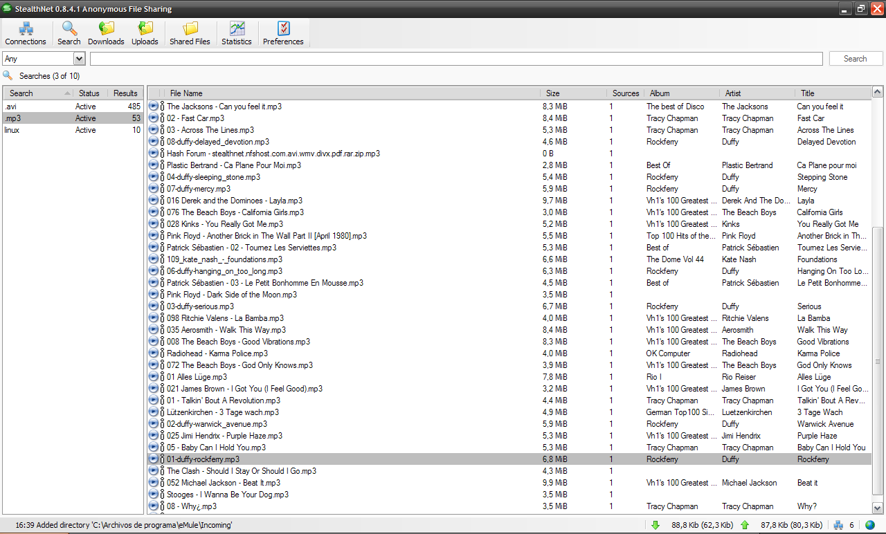 | Описание | Captura de pantalla del programa de intercambio de archivos StealthNet |