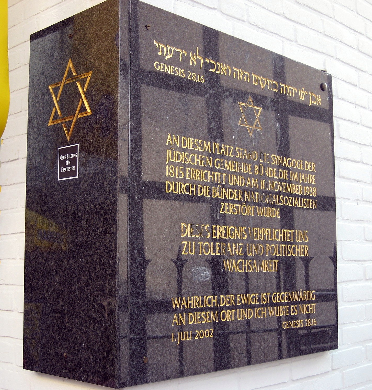 | Описание | Plaque reminding of the former synagogue in Bünde, District of Herford, North Rhine-Westphalia, Germany. |
